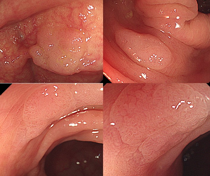 粘膜が一部陥没したり、新しい粘膜上皮が盛り上がって形成されるものです。このタイプのポリープは血管が豊富で赤みを帯びた外観をしていますが、がん化することはなく、切除の必要もありません。